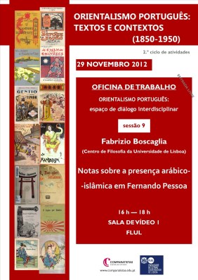 Palestra «Notas sobre presença arábico-islâmica em Fernando Pessoa», por Fabrizio Boscaglia, 29 de Novembro, 16h00, Centro de Estudos Comparatistas, Faculdade de Letras da Universidade de Lisboa.