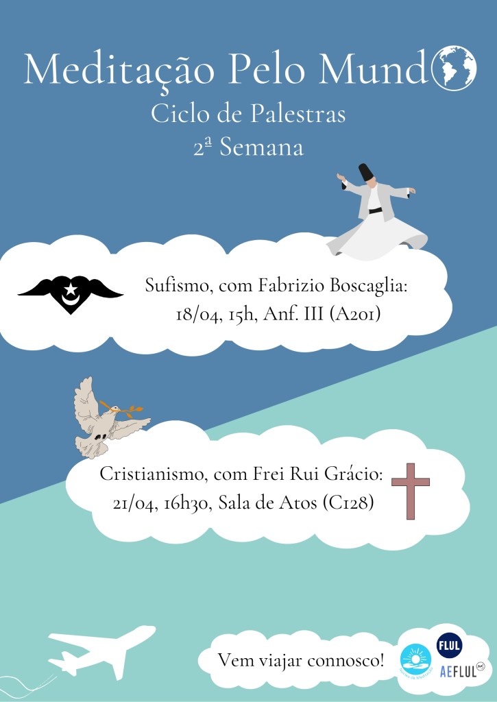 É com muito prazer que aceito o convite do Núcleo de Meditação da Faculdade de Letras da Universidade de Lisboa, para conduzir uma sessão aberta a todos de dhikr, prática meditativa do Sufismo, no Anfiteatro III da faculdade, no dia 18 de abril de 2023 às 15h. Entrada livre, se Deus quiser, no contexto do Ciclo de Palestras «Meditação Pelo Mundo».