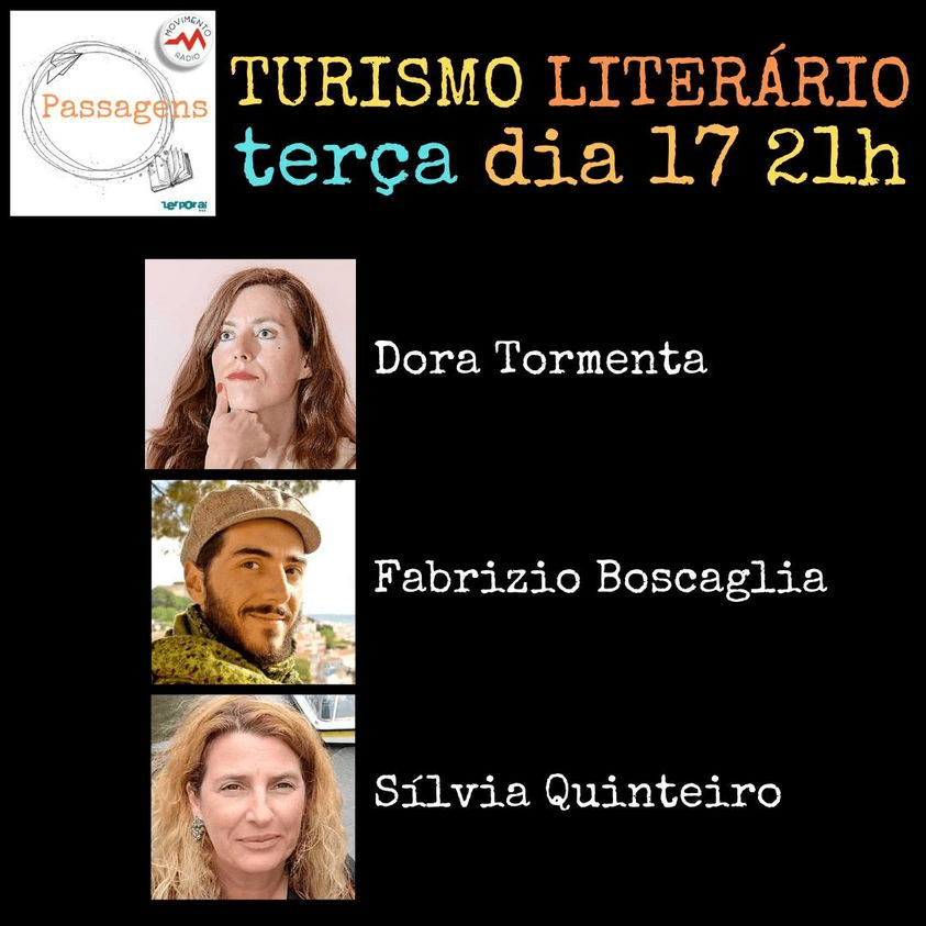 Está marcada para terça-feira dia 17 de outubro de 2023, às 21h, uma conversa sobre Turismo Literário no programa rádio «Passagens» da Rádio Movimento PT Online, realizado por Margarida Branco da «Ler por Aí». Pretendo participar para conversar com ela e com Sílvia Quinteiro e Dora Tormenta.