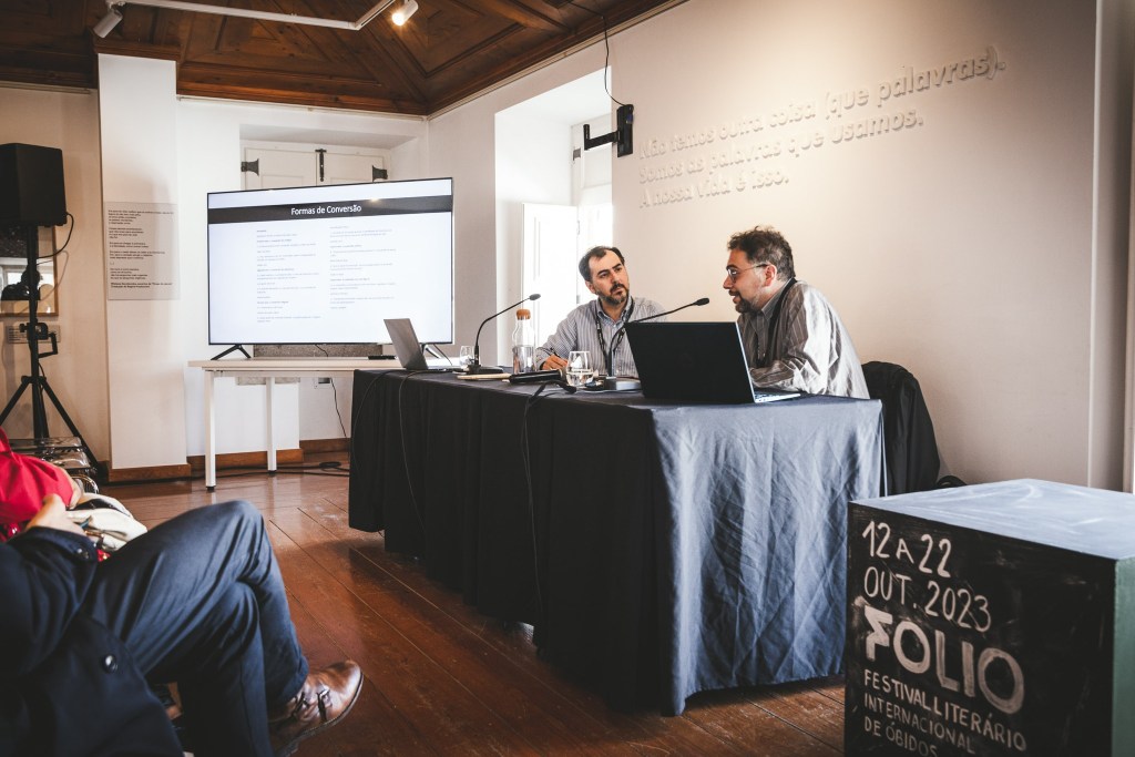 Aquela inclinação para a transformação que, segundo o Gianfranco, é a caraterística própria dos seres humanos, não existiria sem um motor que instiga ou inspira à transformação, e esse motor é a nossa natureza intrinsecamente re-ligiosa. Tem a ver com a nossa experiência da fragmentação, da incompletude, da ferida, do rasgo, da sede e da saudade. Todos nós buscamos a recomposição, a reconciliação, a completude, a re-ligação. Em tudo, particularmente naquilo que nos entusiasma, buscamos isso. Portanto, digo eu, cada conversão é religiosa, mesmo que não se trate de uma conversão – no sentido de mudança – dirigida a uma religião na aceção convencional do termo. Ora, isso tudo, durante a conversa no Folio, não o disse ao Gianfranco. Disse-lhe de Pessoa, de Dante, de António Barahona e de Rūmī. E ouvi-o falar de Platão, Foucault, Hadot e São Paulo. Foi muito agradável e o público gostou.