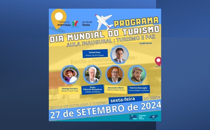 É uma honra ir inaugurar o ano letivo da Escola de Hotelaria e Turismo do Oeste no Dia Mundial do Turismo, nesta sexta-feira dia 27 de setembro. Participo numa mesa-redonda sobre o fascinante e importante tema Turismo e Paz.