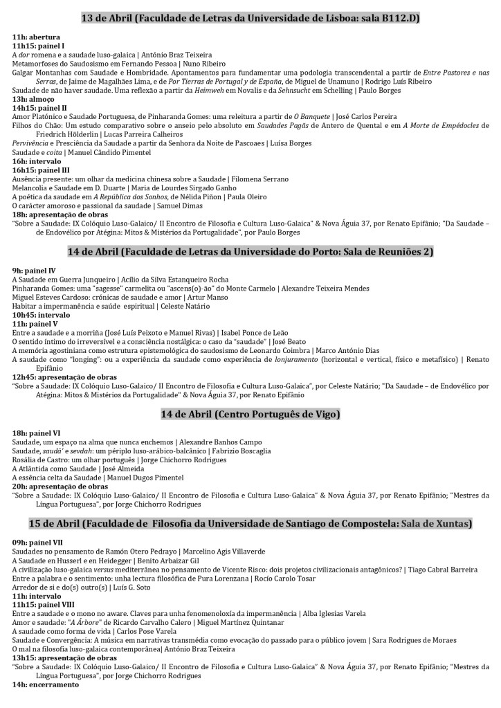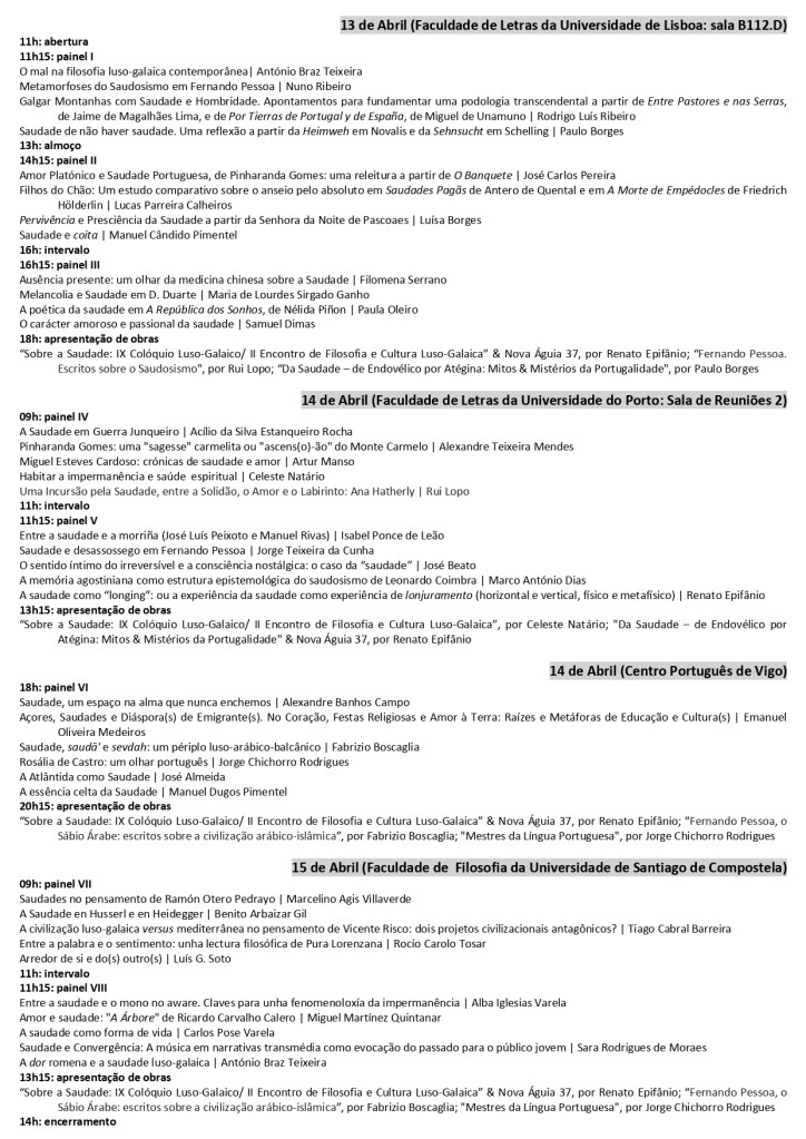Programa e mais informações: https://iflb.webnode.page/abril-2026-x-coloquio-luso-galaico-sobre-a-saudade-iii-encontro-de-filosofia-e-cultura-luso-galaica/