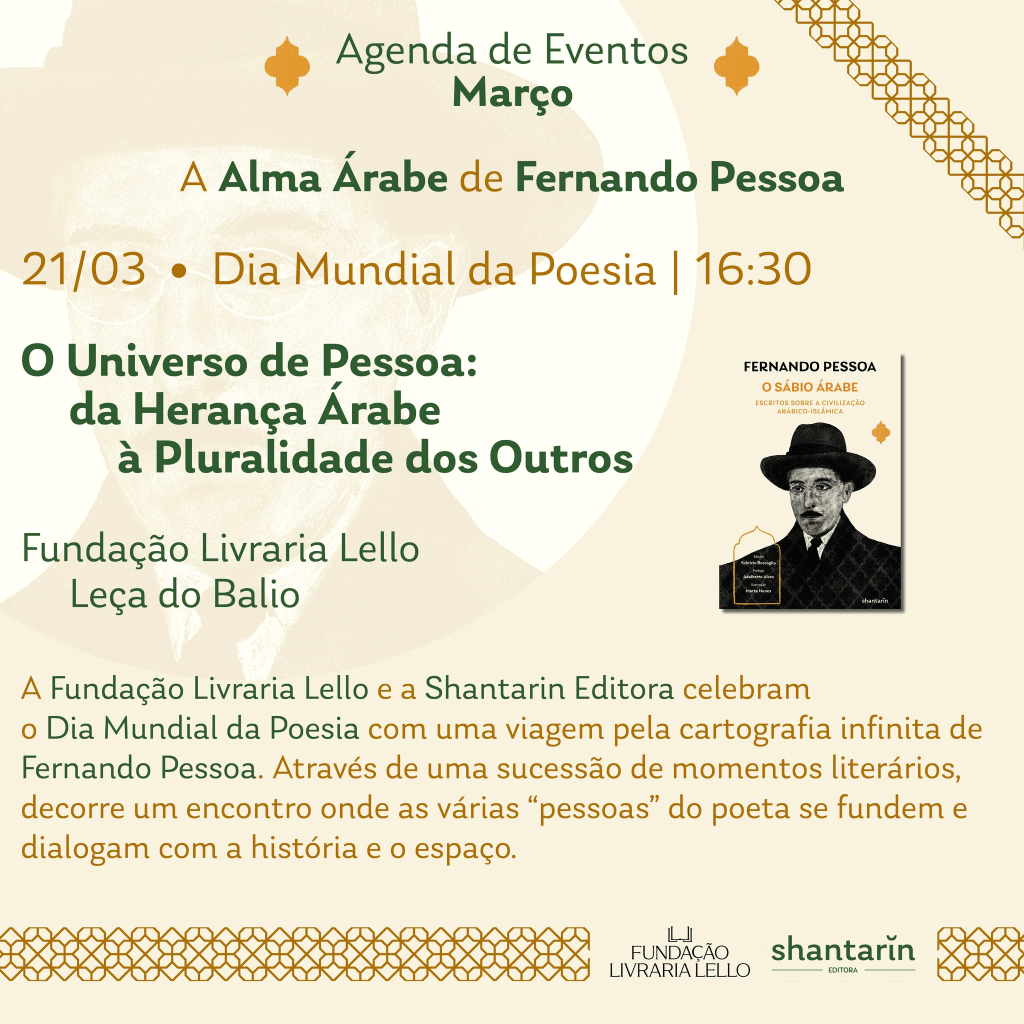 Do site da Fundação Livraria Lello: «No próximo dia 21 de março, às 16h30, a Fundação Livraria Lello, em parceria com a Editora Shantarin, convida-o a descobrir uma faceta menos conhecida, mas profundamente atual, do maior poeta português. Numa era marcada por tensões culturais, a obra “O Sábio Árabe: Escritos Sobre a Civilização Arábico-Islâmica” surge como um antídoto ao “choque de civilizações”.»
