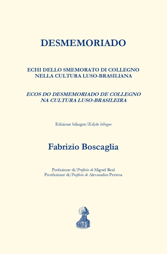 BOSCAGLIA, Fabrizio, Desmemoriado: echi dello Smemorato di Collegno nella cultura luso-brasiliana / ecos do Desmemoriado de Collegno na cultura luso-brasileira, ed. bilíngue italiano/português, prefácio de Miguel Real, posfácio de Alessandro Pertosa, Lisboa, Subterrânea, 2025.