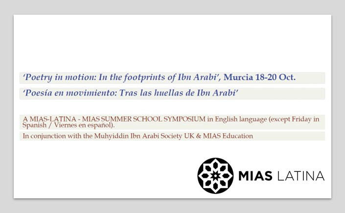 É uma grande honra participar no Simpósio-Escola de Verão da associação MIAS-Latina, dedicado ao tema Poetry in motion: In the footprints of Ibn Arabi, a decorrer entre 18 e 20 de outubro de 2024 em Múrcia. A minha comunicação intitula-se «Ibn Arabi and the Path of Saudade».