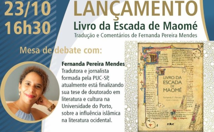 Sou convidado a participar num debate na Pontifícia Universidade Católica de São Paulo, em ocasião do lançamento de O Livro da Escada de Maomé, traduzido por Fernanda Mendes, a decorrer no dia 23 de outubro de 2020.