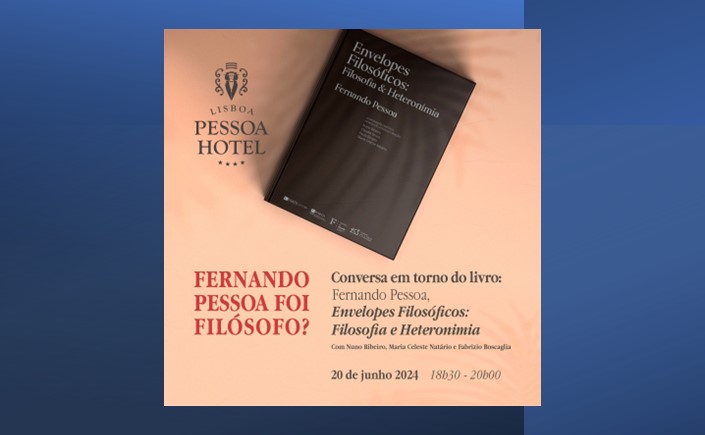 Participo, juntamente com Nuno Ribeiro e Maria Celeste Natário, no evento «Fernando Pessoa foi Filósofo?», conversa em torno do livro Fernando Pessoa, Envelopes Filosóficos: filosofia e heteronímia (U.Porto Press, 2023), coordenado pelos referidos colegas e ainda por Paulo Borges e Claudia Souza. No Lisboa Pessoa Hotel a 20 de junho de 2024, pelas 18h30. Evento gratuito com lugares limitados, sendo a participação sujeita a inscrição.