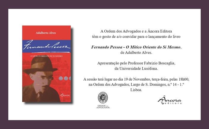 Tenho a honra e o gosto de ter sido convidado para apresentar o mais recente livro de Adalberto Alves, Fernando Pessoa – O Mítico Oriente do Si Mesmo (Âncora, 2024), durante o lançamento do mesmo, agendado para o dia 19 de novembro às 18h na Ordem dos Advogados, em Lisboa. Agradeço ao querido amigo e estimado poeta e intelectual Adalberto Alves pelo honroso convite.