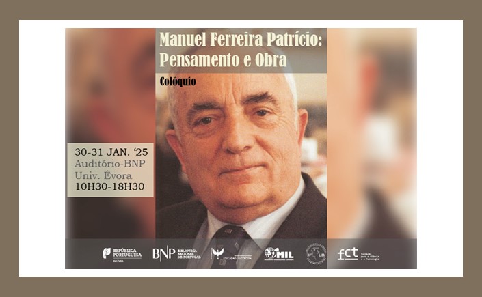 Está agendado para decorrer entre Lisboa e Évora a 30 e 31 de janeiro de 2025 o colóquio «Manuel Ferreira Patrício: pensamento e obra», no qual sou convidado a falar de «Manuel Ferreira Patrício, Fernando Pessoa e os labirintos do Quinto Império», em sessão marcada para ter lugar na Biblioteca Nacional de Portugal, no dia 30 de janeiro às 14h15.